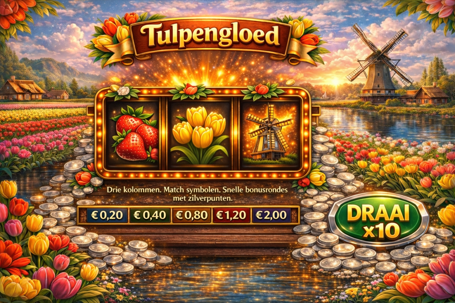 Match symbolen in drie kolommen en jaag op korte, satisfying combo’s. Elke ronde voelt als een mini‑momentje: snel starten, meteen resultaat, en door.