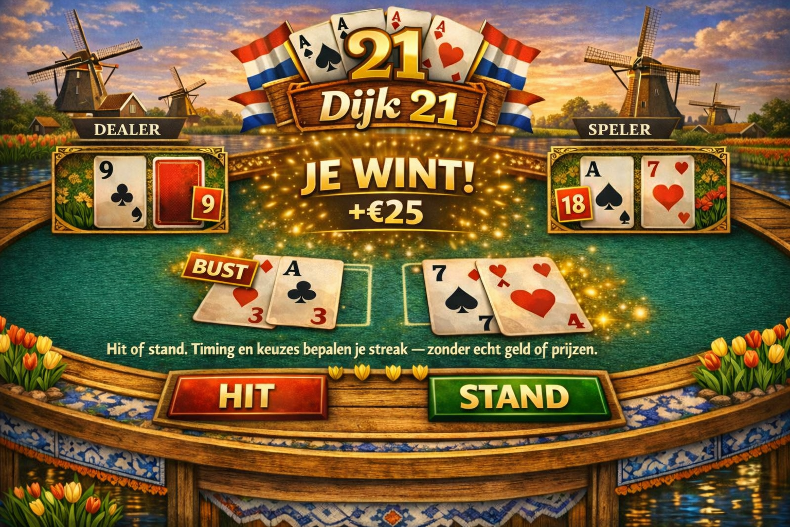 Open Dijk 21HollandPlayHub is uitsluitend voor volwassenen (18+). Je speelt met zilverpunten (virtueel). Er zijn geen betalingen, geen uitbetalingen en geen prijzen met echte waarde.